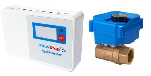 Varsler og/eller stenger vanntilførsel ved lekkasje i sjakt