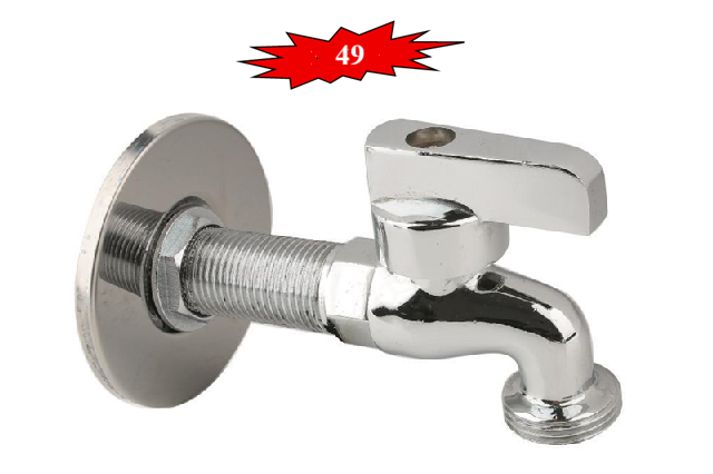 Vaskemaskinkran lang - 1/2x3/4 m/flat 80mm rosett.
